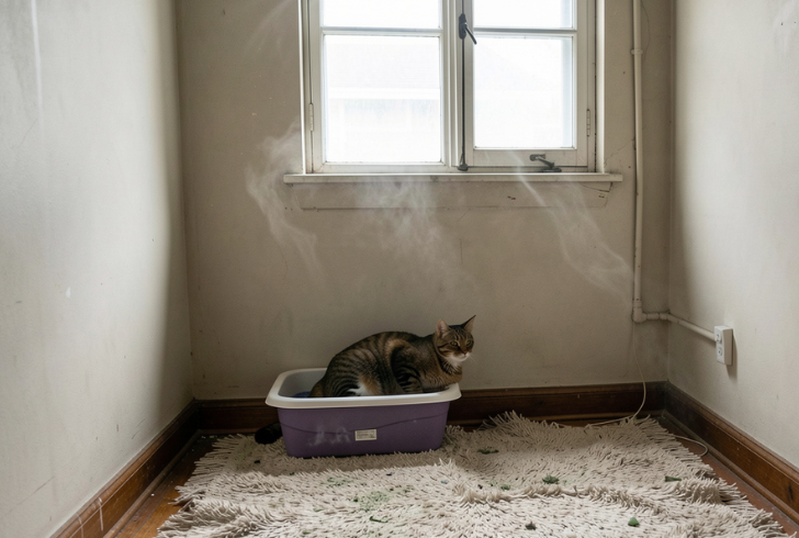 Freepik AI | Litter box smells grow when waste sits too long and fresh air cannot move through the space.
